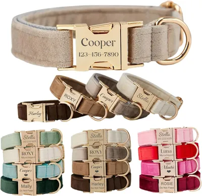 Personalized Velvet Dog Collar & Leash Set with Bow – Custom Pet Collar with Name – Engraved Nameplate & Metal Buckle – Adjustable Puppy Collar