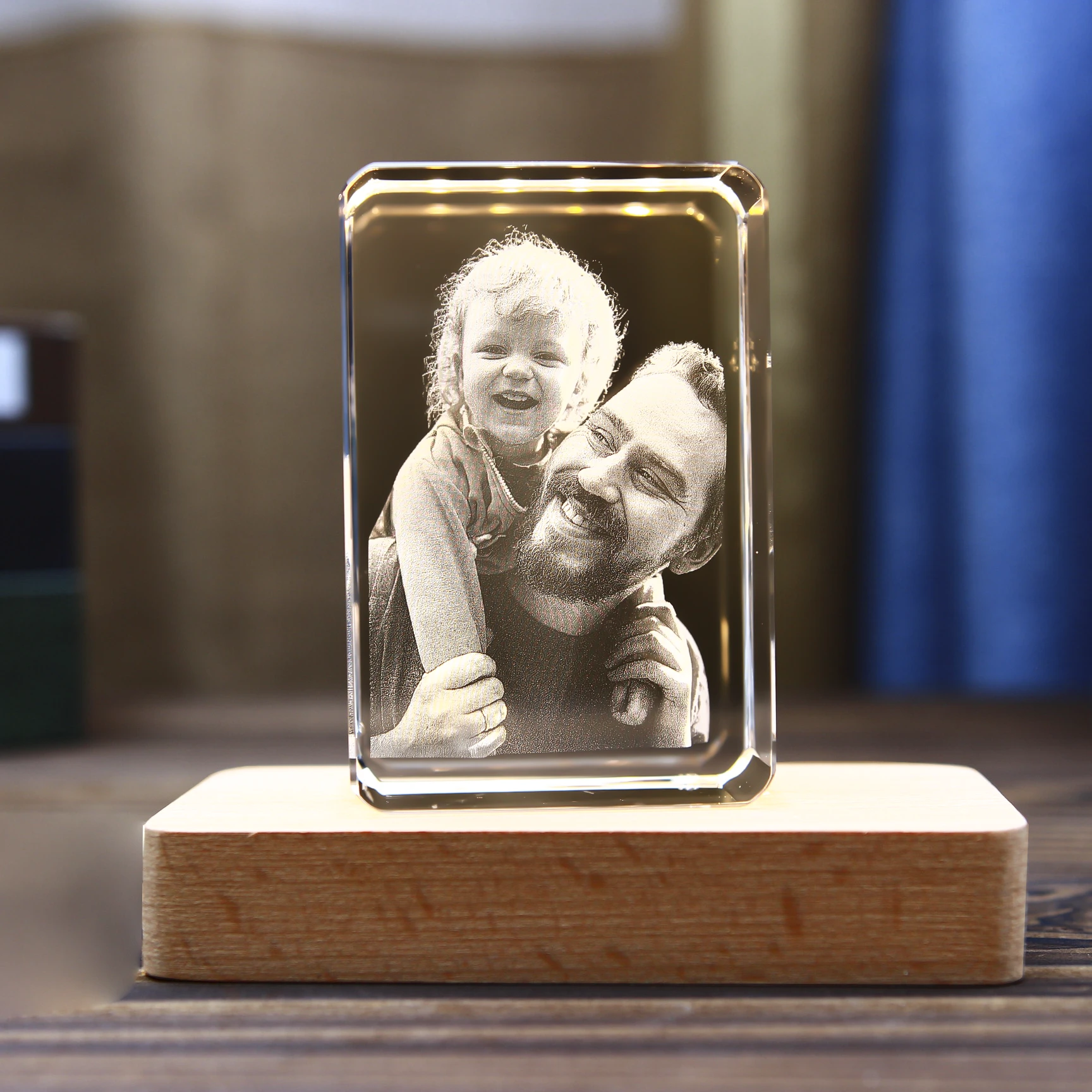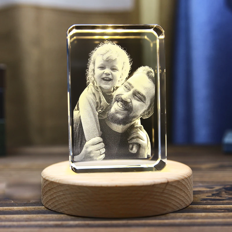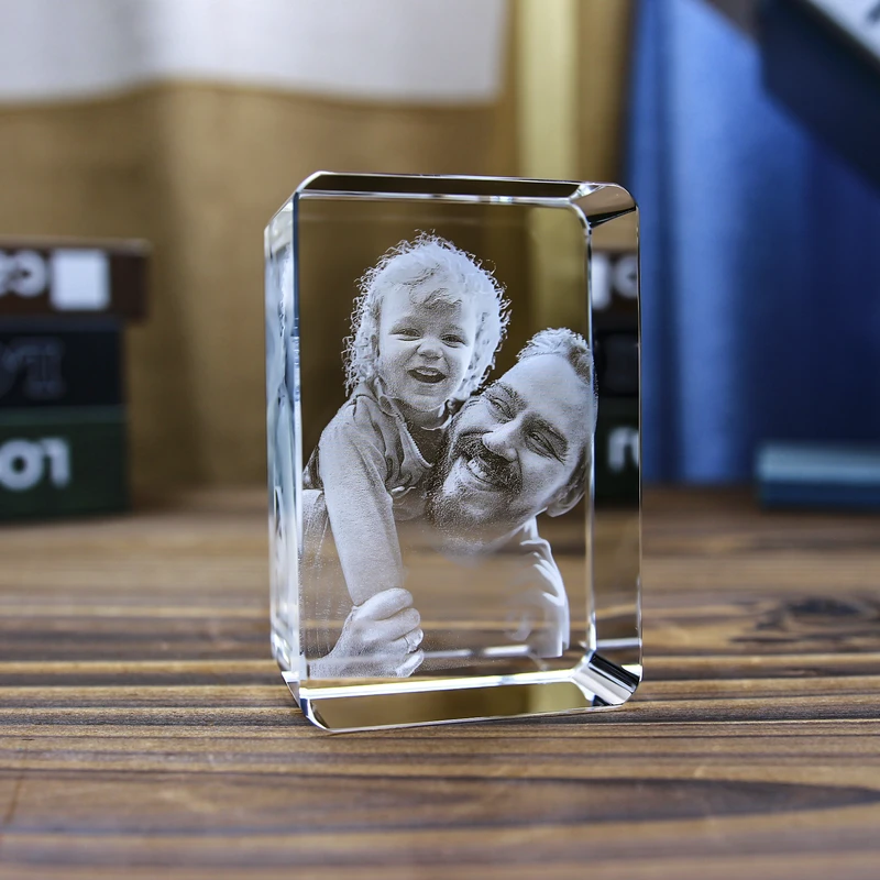 Customized 3D Laser Crystal Photo: 3D Laser Etched Photo In Rounded Corner Crystal For Mothers Day, Fathers Day, Graduation, Anniversary Couples Gifts