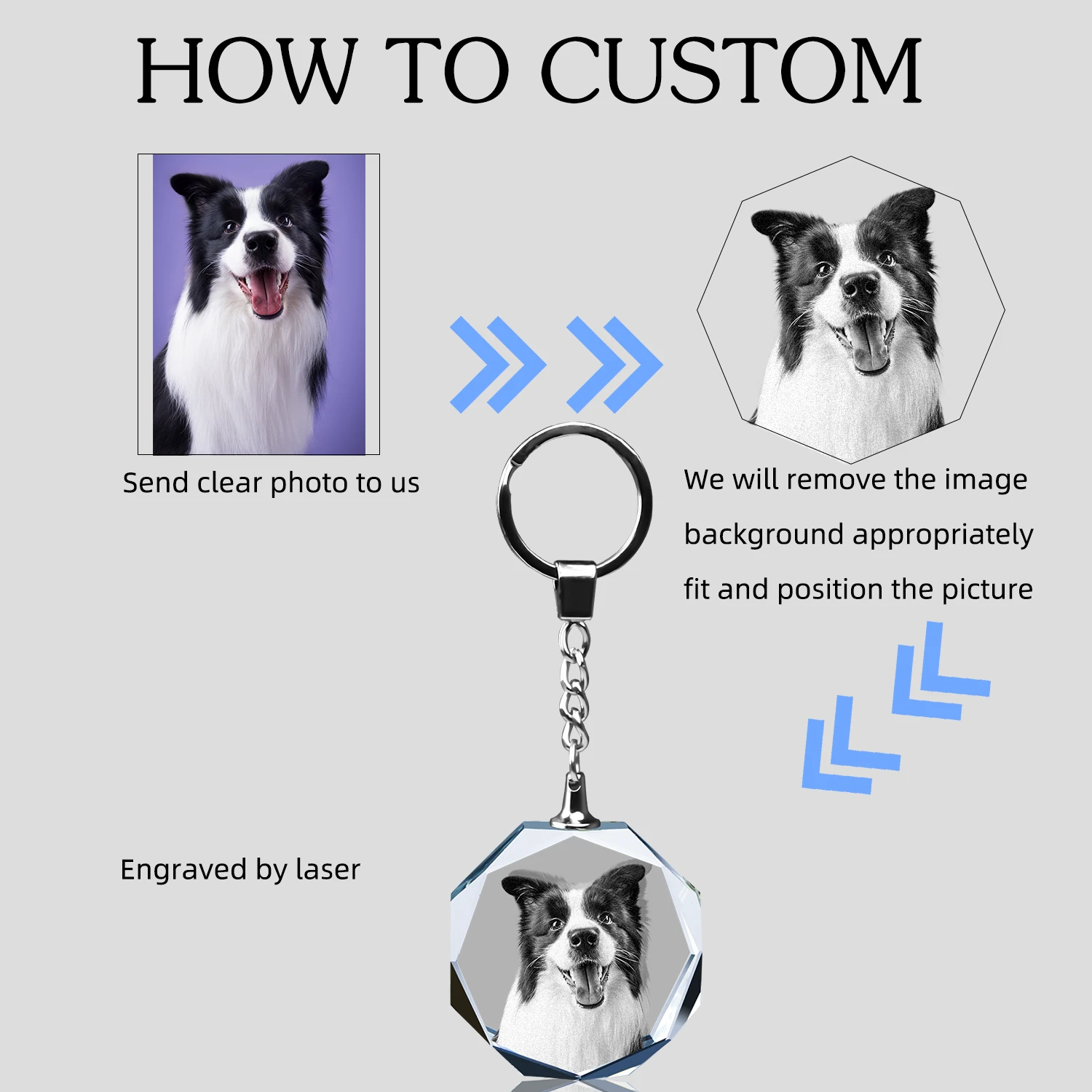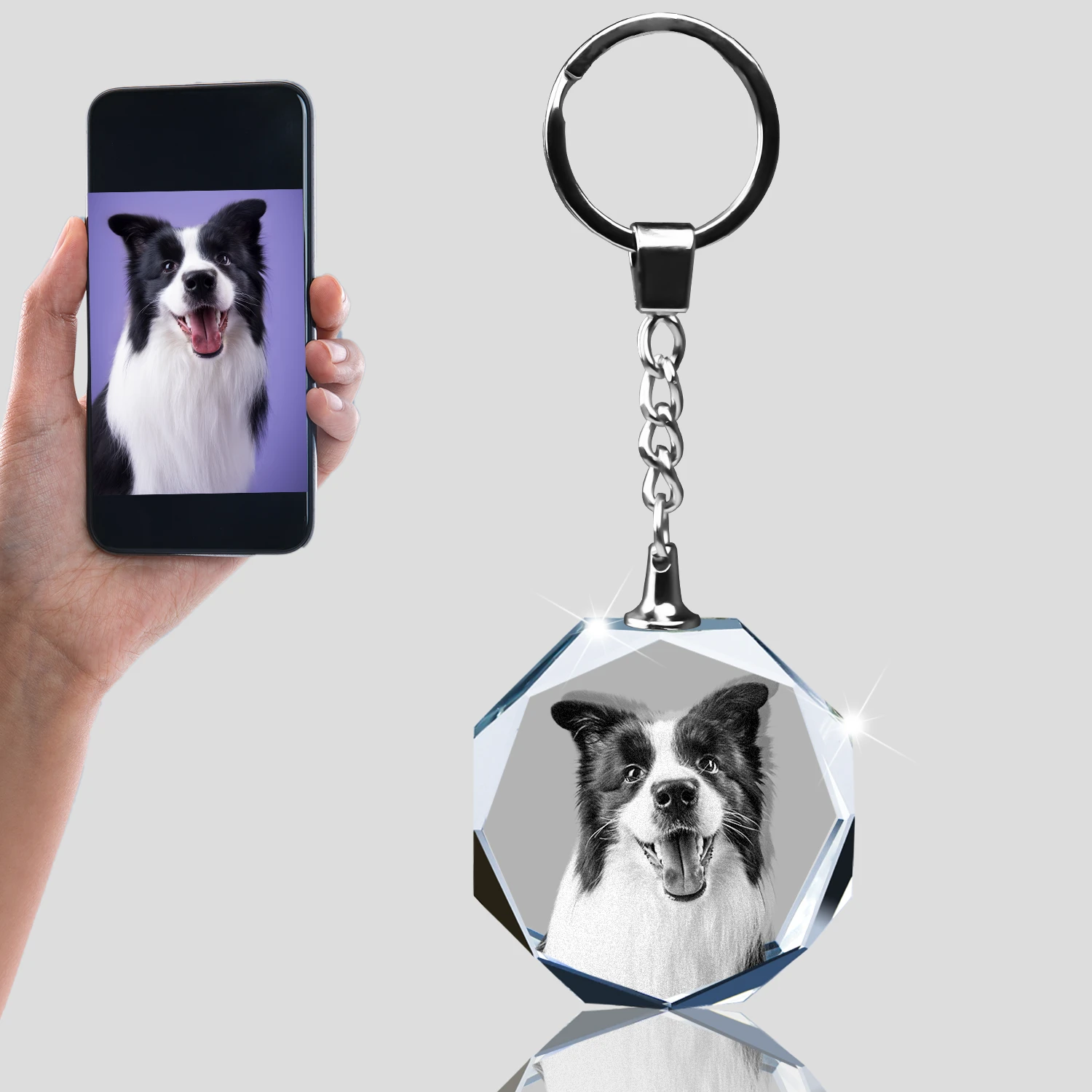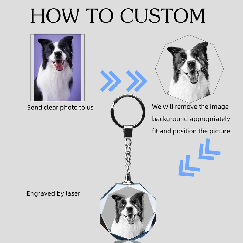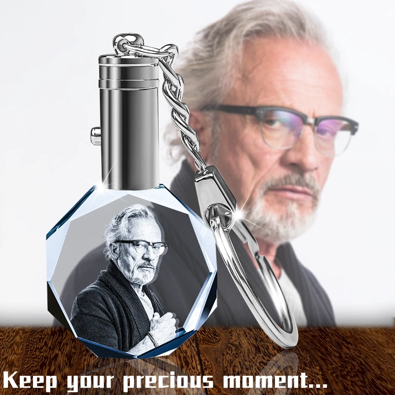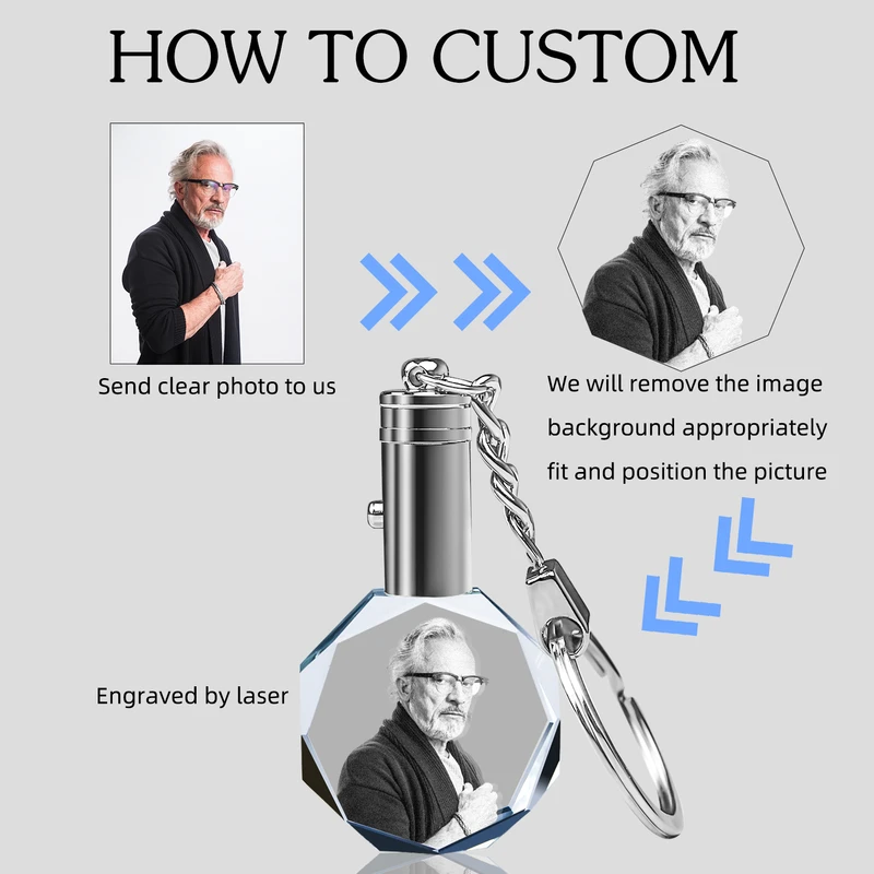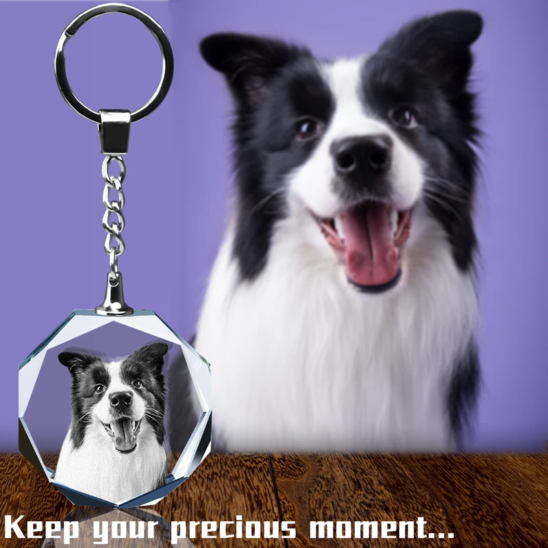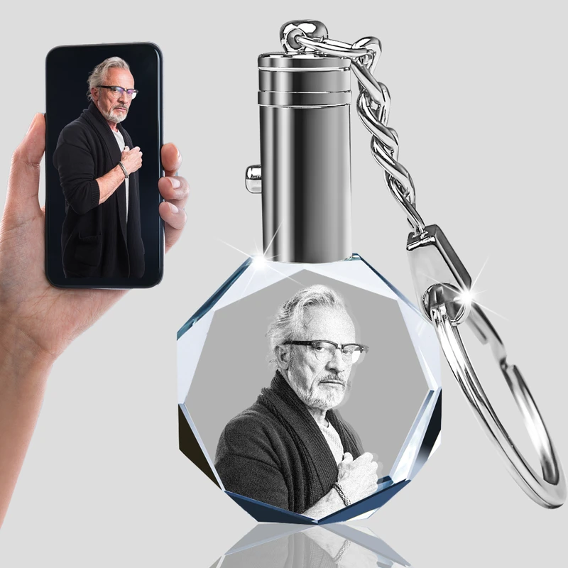 Personalized Crystal KeyChain 2D/3D Crystal KeyChain Laser Etched Photo In Octagon Crystal Memory Gifts For Mom Dad Or Your Soulmate