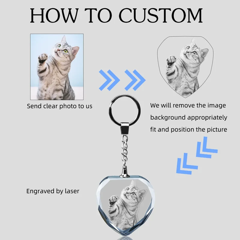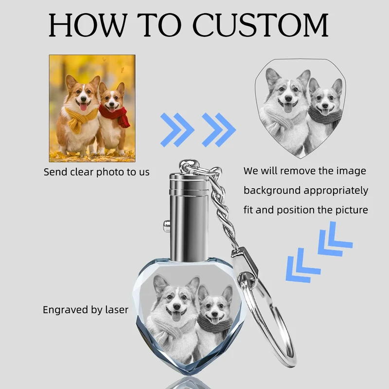Personalized Crystal KeyChain 2D/3D Crystal KeyChain Laser Etched Photo In Heart Crystal Memory Gifts For Mom Dad Soulmate