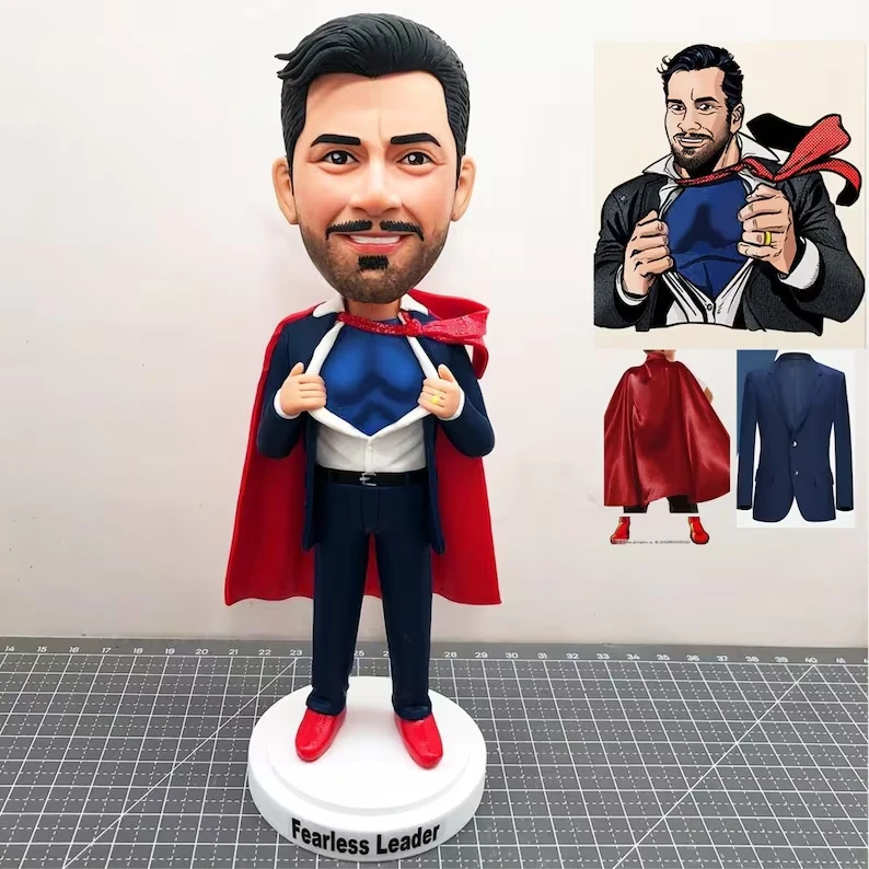 Siperman Bobblehead With Logo Fully Customizable Single Bobblehead Polymer Clay Gift for Fathers Day