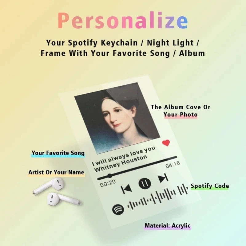 Spotify Photo Keychain Printing Photo on Acrylic Memory Gifts For Soulmate Friends