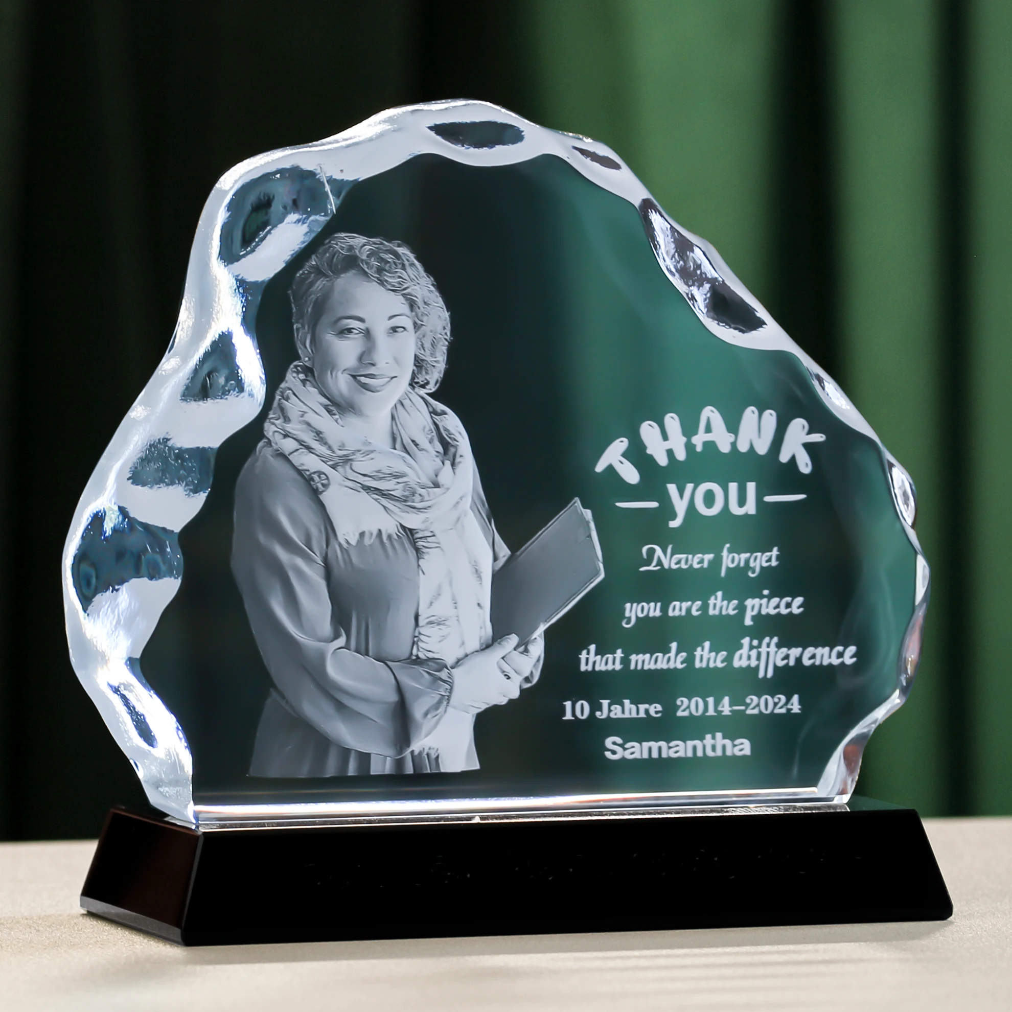 Customized 3D Laser Crystal Photo: 3D Laser Etched Photo In Big Iceberg Crystal For Mothers Day, Fathers Day, Graduation, Anniversary Couples Gifts